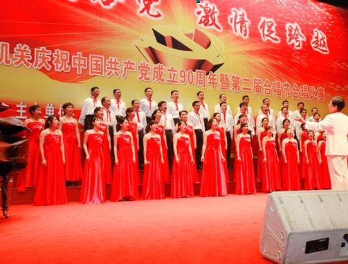 2011年6月2日,為紀(jì)念中國共產(chǎn)黨成立90周年,受省科技廳委托,以省信息所為主,省科技開發(fā)中心和省科技干校參與組成的合唱隊(duì)參加第二屆省直機(jī)關(guān)合唱節(jié)活動(dòng)。為在比賽中能夠更好的展現(xiàn)廣大科技工作者昂揚(yáng)向上的精神風(fēng)貌,大家克服困難、齊心排練,一個(gè)月以來,合唱水平有了明顯提高。在賽場上,合唱團(tuán)成員以真摯的情感、飽滿的熱情、優(yōu)美的歌聲,演唱了《在希望的田野上》和《在燦爛陽光下》兩首歌曲,表達(dá)了科技廳系統(tǒng)干部職工對我們黨的事業(yè)無限熱愛和忠誠,展示了他們積極進(jìn)取、奮發(fā)向上的精神風(fēng)貌。