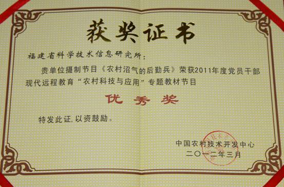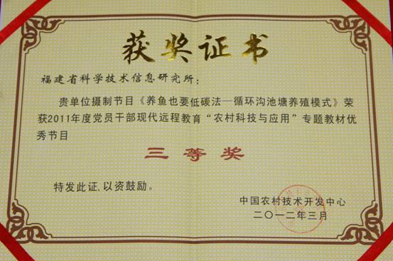 日前在科技部農(nóng)村中心組織召開的2012年科技部黨員干部現(xiàn)代遠程教育專題教材制播工作會議上,信息所去年報送的電視專題片《養(yǎng)魚也要低碳法—循環(huán)溝池塘養(yǎng)殖模式》、《農(nóng)村沼氣的后勤兵》分獲三等獎和優(yōu)秀獎。