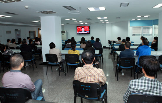 黨員干部職工人觀看十八大開幕盛況直播