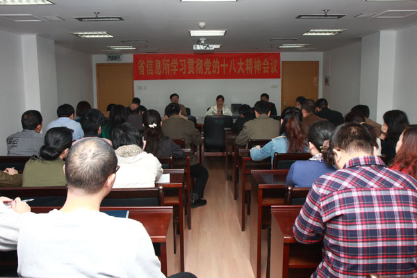 11月19日下午,省信息所召開學習貫徹黨的十八大精神會議,組織黨總支委員、各黨支部委員、所中層以上干部和高級職稱等40余人參加會議學習,朱祥枝所長主持會議。