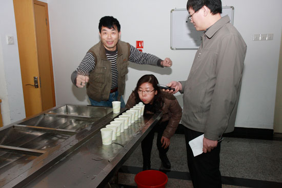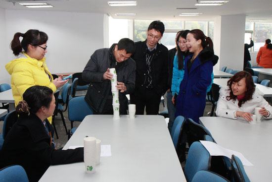 本次活動(dòng)共設(shè)置了“蒙眼點(diǎn)金”、“水上吹球”、“衣架連連看”、“紙杯搭塔”、“男女雙人背夾氣球跑步競(jìng)賽”等6個(gè)趣味性很強(qiáng)的項(xiàng)目,活動(dòng)形式新穎、活潑。