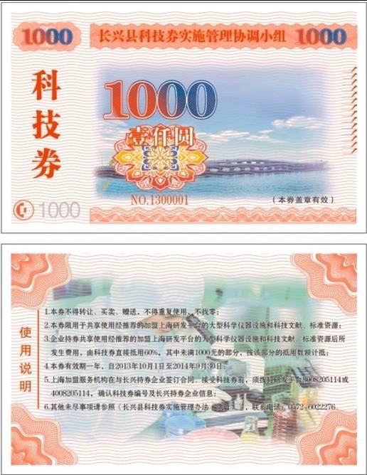 圖注:該科技券是鼓勵(lì)長興地區(qū)企業(yè)共享使用上海地區(qū)的大型科學(xué)儀器設(shè)施和科技文獻(xiàn)、標(biāo)準(zhǔn)資源,為當(dāng)?shù)仄髽I(yè)開展新技術(shù)、新產(chǎn)品、新工藝和新材料的研制開發(fā)等科技創(chuàng)新活動(dòng)設(shè)計(jì)發(fā)放的,由長興縣財(cái)政部門兌現(xiàn)的一種“有價(jià)證券”。詳見:http://cx.sgst.cn/web/changxing/changxing_index.html