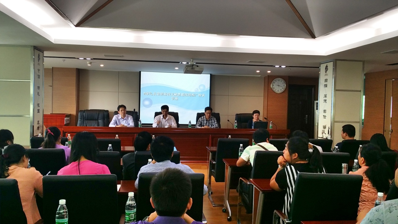 文獻(xiàn)資源室副主任錢莉萍就省所科技文獻(xiàn)資源應(yīng)用作了講座,劉少俊就NSTL的資源、使用及服務(wù)效果作了講座,并發(fā)放了NSTL免費(fèi)試用卡。