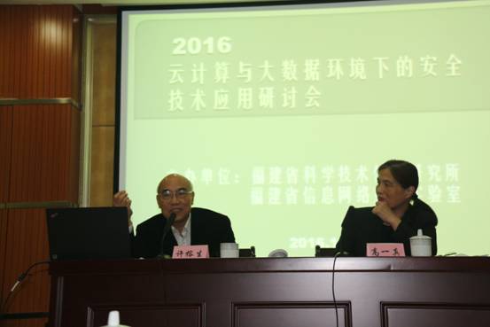 中國科學(xué)院高能物理研究所許榕生研究員、中國科學(xué)院信息工程研究所劉寶旭研究員等專家進(jìn)行了多場學(xué)術(shù)講座。劉寶旭研究員的“網(wǎng)絡(luò)空間安全風(fēng)險(xiǎn)與對策”從國家層面的高度向與會(huì)人員介紹和闡述了當(dāng)前大數(shù)據(jù)時(shí)代到來以后國際國內(nèi)形勢下網(wǎng)絡(luò)安全對國家信息安全的重要性。杭州安恒信息技術(shù)有限公司林明峰,福建師范大學(xué)黃欣沂、陳志德教授,福州靠譜云科技有限公司柳明興,福建省科技信息研究所賴建華、藍(lán)友樞也向大家做了精彩的學(xué)術(shù)報(bào)告。