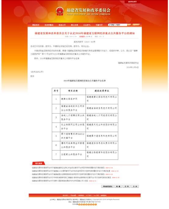 根據(jù)《福建省發(fā)展和改革委員會(huì)關(guān)于認(rèn)定2016年福建省互聯(lián)網(wǎng)經(jīng)濟(jì)重點(diǎn)公共服務(wù)平臺(tái)的通知》(閩發(fā)改數(shù)字〔2016〕802號(hào)),省信息所所屬海峽信息公司建設(shè)運(yùn)營(yíng)的“福建省海峽軟件應(yīng)用安全公共服務(wù)平臺(tái)”成功入選2016年福建省互聯(lián)網(wǎng)經(jīng)濟(jì)重點(diǎn)公共服務(wù)平臺(tái),成為省財(cái)政扶持建設(shè)項(xiàng)目中信息網(wǎng)絡(luò)空間安全方向的唯一重點(diǎn)資質(zhì)對(duì)象。