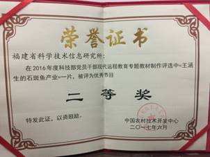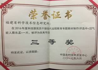 2016年度,我所共制作完成并播出黨員干部現(xiàn)代遠程教育專題教材21集,時長191分鐘。其中,《王涵生的石斑魚產(chǎn)業(yè)》獲得優(yōu)秀節(jié)目二等獎,《沼氣能人蔡東孟》獲得優(yōu)秀節(jié)目三等獎。