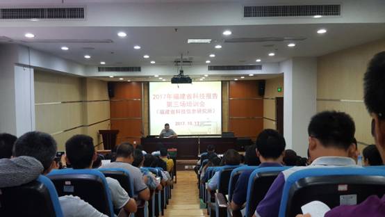 根據(jù)《福建省科技報(bào)告制度建設(shè)工作方案》要求,2017年省科技廳確定繼續(xù)在省屬公益類科研院所專項(xiàng)項(xiàng)目開展科技報(bào)告推廣和培訓(xùn)工作。為此,省科技報(bào)告管理中心在省科技廳發(fā)展計(jì)劃處的指導(dǎo)和各協(xié)辦單位的支持下,制訂了周密的培訓(xùn)工作計(jì)劃,于10月11—19日,先后在省農(nóng)業(yè)科學(xué)院、省水產(chǎn)研究所和省信息所舉辦了6場(chǎng)科技報(bào)告培訓(xùn)會(huì)。